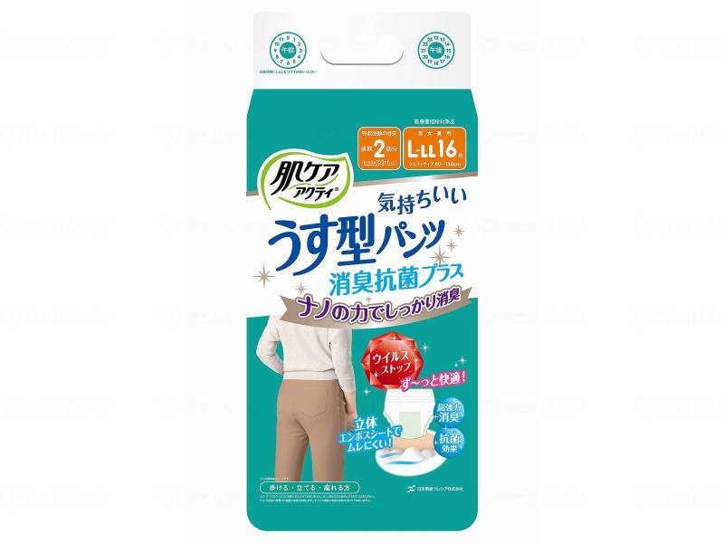 日本製紙クレシア 肌ケア アクティ うす型パンツ 消臭抗菌プラス / 80649 L-LL 16枚×4袋セット/ケース販売 まとめ買い 業務用